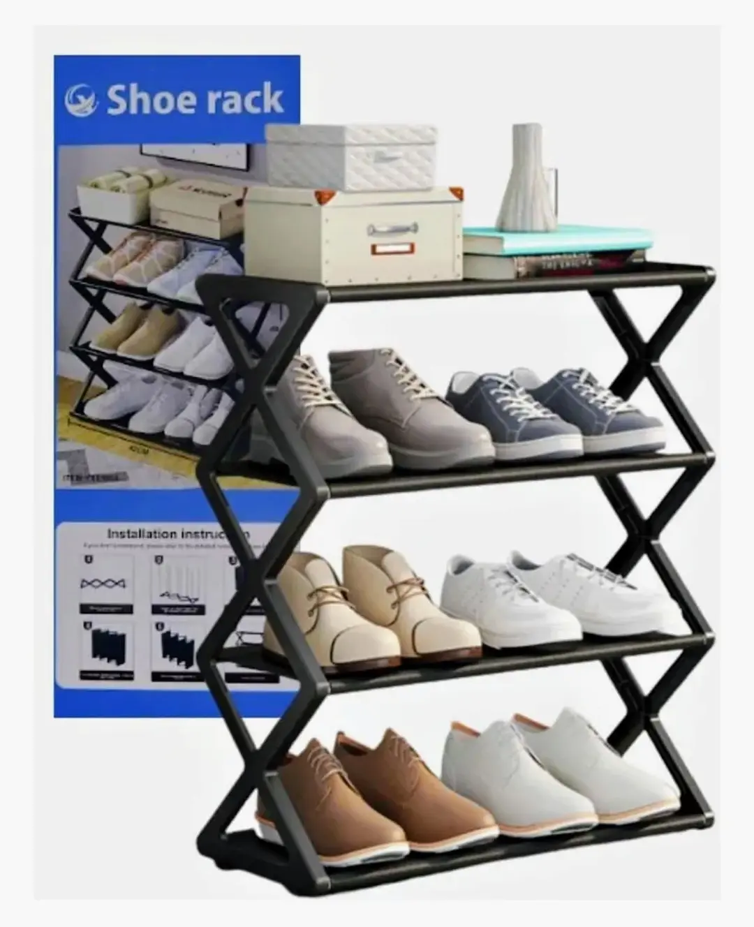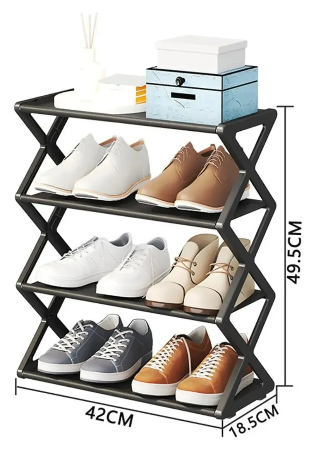 Mantén tu hogar ordenado y tus zapatos siempre a mano con este práctico zapatero multiuso. Su diseño compacto y funcional ofrece 4 niveles de almacenamiento, permitiendo organizar calzados de manera eficiente sin ocupar demasiado espacio.